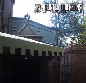 ed mansion ride. The sharp-eyed guest can spot small portions of the ride facility behind the cemetery, and above the exit. (If you are in Fantasyland, you can see the side of the structure, if you look between the old Skyway station, and "It's a Small World".)