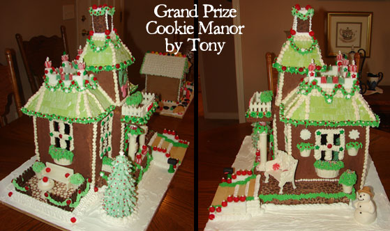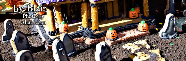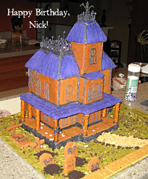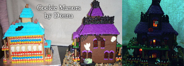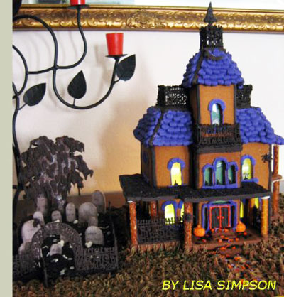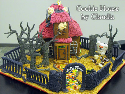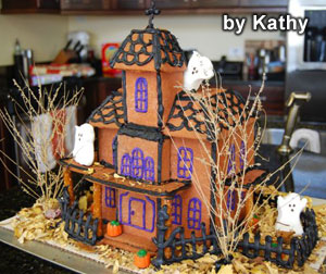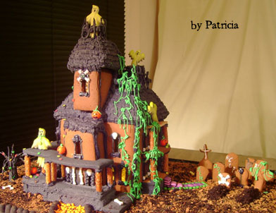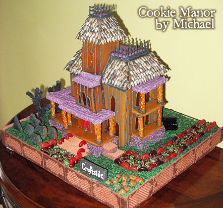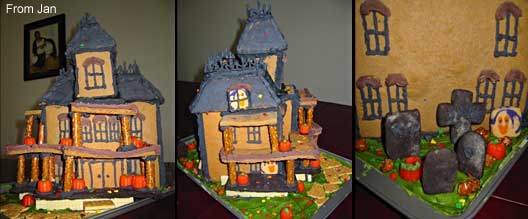 September 12, 2008 Happy Birthday, Nick! I received an email that read, "I just wanted to thank you for your information on the website. We built this haunted house for my son’s birthday party (Nick). It was a hit!" ![]() Fantastic! I'm sure your party guests were amazed! You can find my do-it-yourself Cookie Phantom Manor project, HERE. September 20, 2008 Eureka, Another Cookie Manor! Teresa, from Eureka, California, sent a photo of her cookie Phantom Manor. Teresa writes, "Do to the high humidity in Eureka, CA I had problems with the gingerbread breaking so I over-cooked them, which made them dark on the edges, which added to the over all spooky feeling of the piece. I had a lot of fun putting it together and it turned out fantastic. " ![]() I agree, Teresa. Your Phantom Manor looks great, and I'm glad it was such a success! July 23, 2008 A Big Winner! Angela Smithson won top honors at the Adams County Fairfest 2008, with her gingerbread house entry using the Cookie Phantom Manor pattern! She won "Best in Show" for the "Decorated Items" class in baking. Angela also created a cemetery and mausoleum behind the house. Congratualtions Angela! You did a wonderful job with your cookie creations, and I am thrilled that all of your hard was rewarded! ![]()