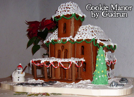 December 19, 2008 Phantom Gingerbread from Germany Gudrun, from Dortmund, Germany writes, "Thanks for the guidance for the "Phantom Manor house". I made it a Christmas house for my grandchild. I wish you (and all friends of this web page) glad Christmas and a happy new year!!!!!!!!! It is beautiful, Gu drun! I hope you and your family have a great Christmas!